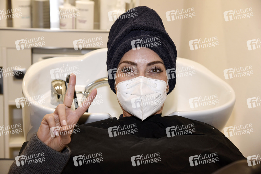 Sarah Valentina Winkhaus beim Friseurbesuch nach dem Friseurneustart nach Lockdown im Salon Figaro. München, 10.03.2021