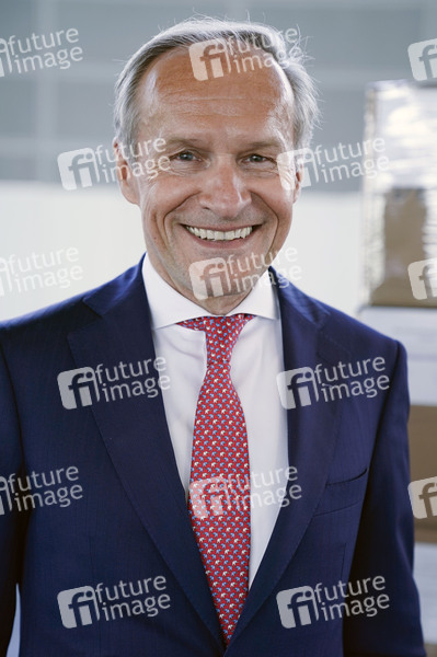 Christian von Daniels (Inhaber van Laack) beim Besuch im Landeslager für Schutzausrüstung an der Messe. Düsseldorf, 03.06.2020