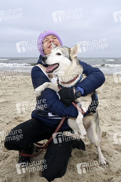 Prominenz, Celebrity, Celebrities, Entertainment, Hunderennen, Schlittenhunderennen, Hunde, Huskys, Husky, Ostsee, Usedom, Charity-Event, Charity, Charity Rennen zu Gunsten der Welthungerhilfe, Sängerin, Moderatorin
