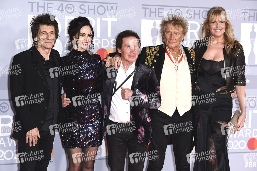 Ronnie Wood, Sally Humphreys, Kenney Jones, Rod Stewart und Penny Lancaster bei der Verleihung der BRIT Awards 2020 in der O2 Arena. London, 18.02.2020
