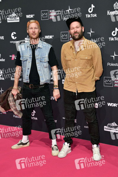 Jojo Berger und Andy Berger von Querbeat bei der 23. Verleihung der 1Live Krone 2022 in der Jahrhunderthalle. Bochum, 08.12.2022