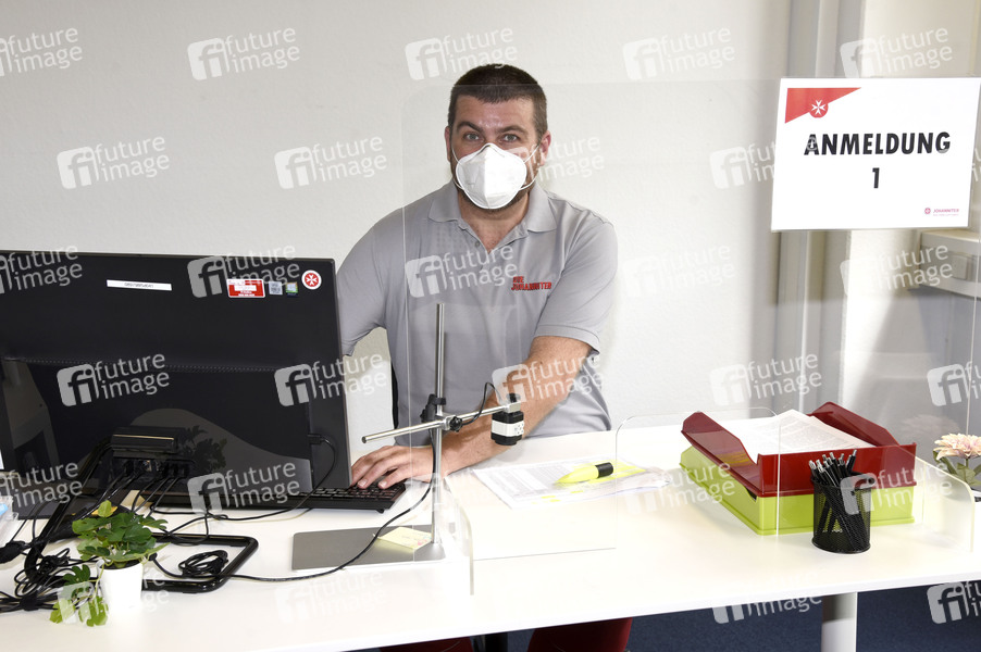 Schauspieler und Kabarettist Franz Josef Strohmeier arbeitet für die Johanniter im Impfzentrum der Johanniter. Er ist auch berechtigt zu Impfen. Oberhaching, 06.06.2021