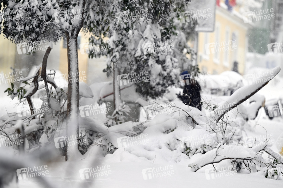Das Sturmtief Filomena sorgt in der Region Madrid und anderen Teilen Spaniens mit starken Schneefällen für Chaos. Die Hauptstadt Madrid wurde durch historisch heftigen Schneefall lahmgelegt. Seit 50 Jahren hat es nicht so geschneit. Der Verkehr ist in weiten Teilen des Landes zusammengebrochen. Madrid, 09.01.2021