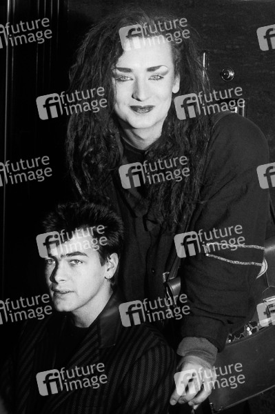 Boy George und John Moss von Culture Club bei einer Pressekonferenz im Royal Garden Hotel. London, 22.11.1983
