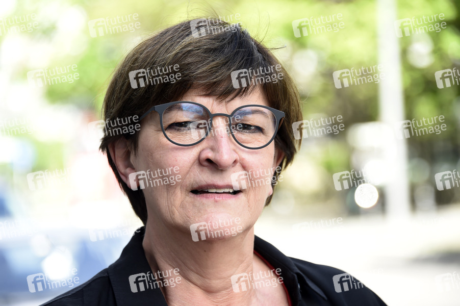 Saskia Esken bei der Hissung der Regenbogenflagge anlässlich des Internationalen Tages gegen Homo-, Bi-, Inter- und Transphobie am Willy-Brandt-Haus. Berlin, 17.05.2021