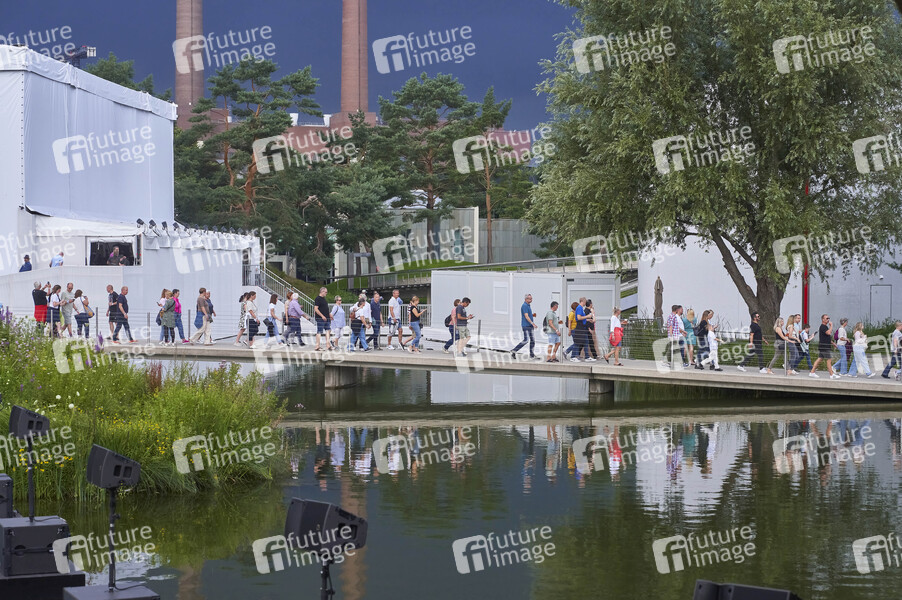 Jan Delay & Disko No. 1 beim Sommerfestival 2024 unter dem Motto 'Beats, Bands und Beach' in der Autostadt. Wegen einer Unwetterwarnung des DWD musste kurz vor Beginn des Konzertes das Publikum evakuiert werden; das Konzert begann 50 min später . Wolfsburg, 12.07.2024