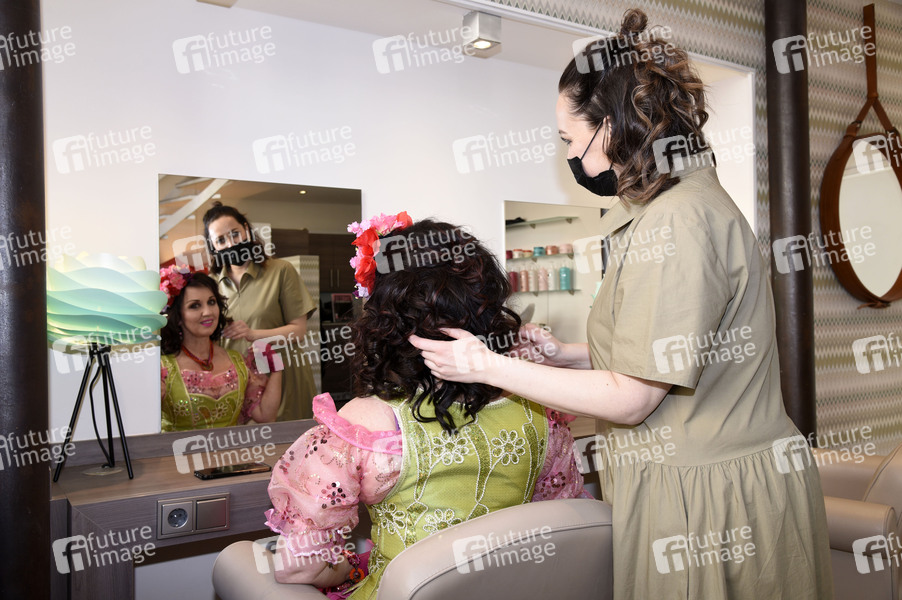 Entertainment, Prominenz, Celebrity, Celebrities, Photoshooting, Maskenpflicht, Dirndlpunk, Designerin, Corona-Krise, Corona, Coronaepidemie, Corona-Epidemie, Coronakrise, Coronamaßnahmen, Corona-Maßnahmen, Coronaregeln, Corona-Regeln, Coronaschutzverordnung, Corona-Schutzverordnung, Coronatest, Coronatests, Corona-Tests, Corona-Test-Verordnung, Testergebnis, Testmaßnahmen, Testpflicht, Friseur, Frisör, Friseursalon