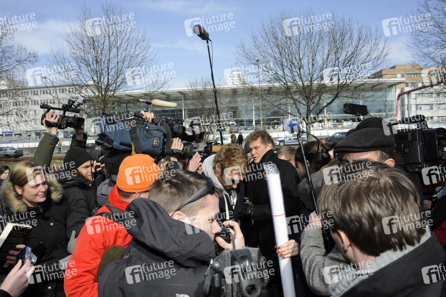 David Hasselhoff protestiert an der East Side Gallery gegen Abbau der Berliner Mauer. Berlin, 17.03.2013
