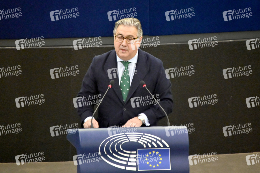 Juan Ignacio Zoido Alvarez bei einer Plenartagung über den Schutz von Tieren beim Transport im Plenarsaal des Europäischen Parlaments. Straßburg, 20.01.2022
