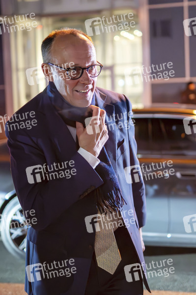 Friedrich Merz bei der Ankunft zur TV Diskussion 'Quadrell - Der große Wahlabend ' zum Bundestagswahlkampf 2025 am Studio Adlershof. Berlin, 16.02.2025