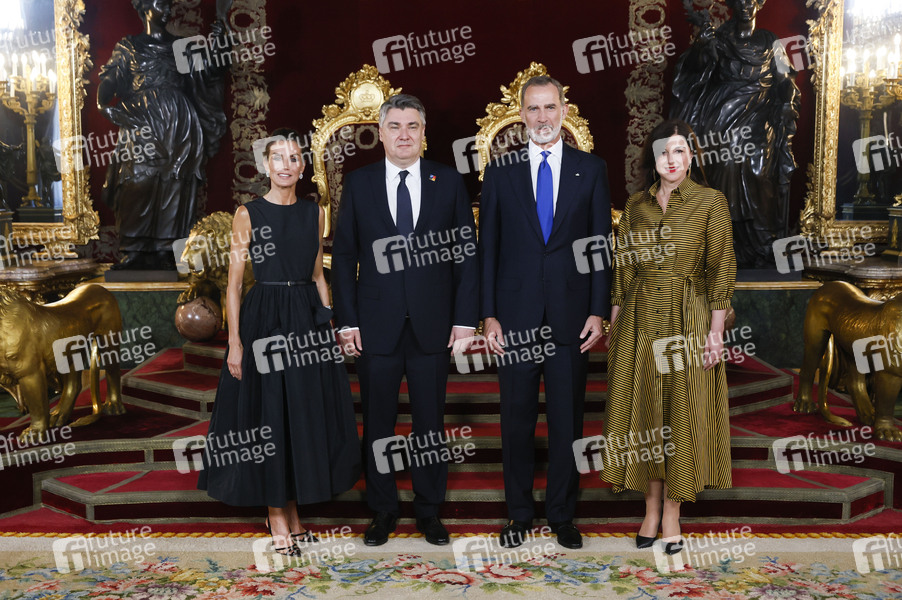 Königin Letizia von Spanien und König Felipe von Spanien mit Zoran Milanovic und Ehefrau Sanja Music Milanovic beim Empfang zum Gala-Dinner zu Ehren der NATO-Staats- und Regierungschefs im Palacio Real. Madrid, 28.06.2022