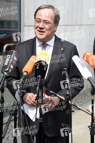 Armin Laschet bei einem Pressestatement zur Kanzlerkandidatur von Annalena Baerbock vor dem Konrad-Adenauer-Haus. Berlin, 19.04.2021