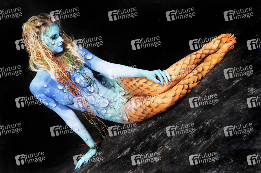 Bodypainting, Erotik, Frau, Mädchen, nackt, drinnen, weiblich, Körperkunst, Kunst, Malerei, Nixe, erotic, woman, girl, nude, indoor, female, body art, body painting, neck, nixie
