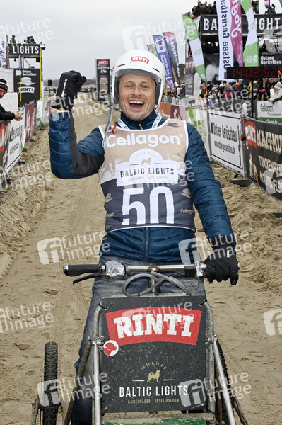 Roman Knizka beim 9. Baltic Lights 2025 Charity-Schlittenhunderennen zu Gunsten der Welthungerhilfe zwischen der Seebrücke Ahlbeck und der Seebrücke Heringsdorf. Heringsdorf, 01.03.2025
