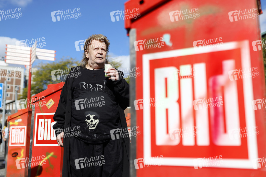 Künstler, Aktionskünstler, Kunst, Aktionskunst, Objektkunst, Trash People, Bild-Zeitung, BILD, Boulevardzeitung, Presse, Zeitung, Zeitungskasten, Zeitungskästen, Bild-Kästen, Druckerzeugnis, Papierzeitalter, Medien, Digitalisierung, Medienwandel, Yellow Press, Boulevard, Tageszeitung