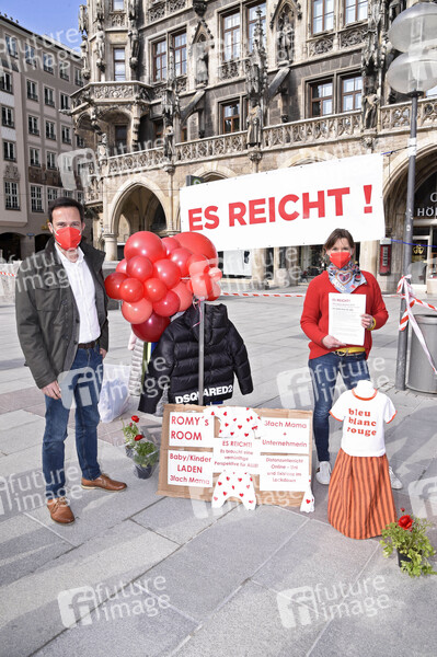 Martin Hagen und Mandy Hentschel (Romy's Room) bei der Protestaktion 'GemeinsamZukunft! Es reicht!' für Öffnungen und Lockdownende auf dem Marienplatz. München, 07.03.2021