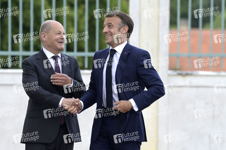 Olaf Scholz und Emmanuel Macron beim Treffen des Deutsch-Französischen Ministerrats im Gästehaus der Bundesregierung Schloss Meseberg. Meseberg, 28.05.2024