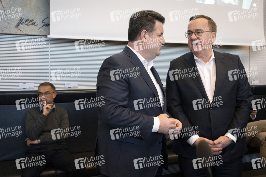 Hubertus Heil und Boris Pistorius bei der Fraktionssitzung der SPD-Bundestagsfraktion im Reichstagsgebäude. Berlin, 10.03.2025