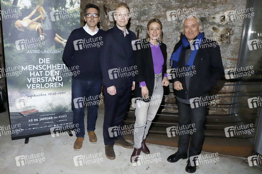 Alexandre Dupont-Geisselmann, Max Hallen, Claudia Cellarius und Wilfried Hauke bei der Premiere des Dokumentarfilms 'Astrid Lindgren - Die Menschheit hat den Verstand verloren' in den Zeise Kinos. Hamburg, 19.01.2026