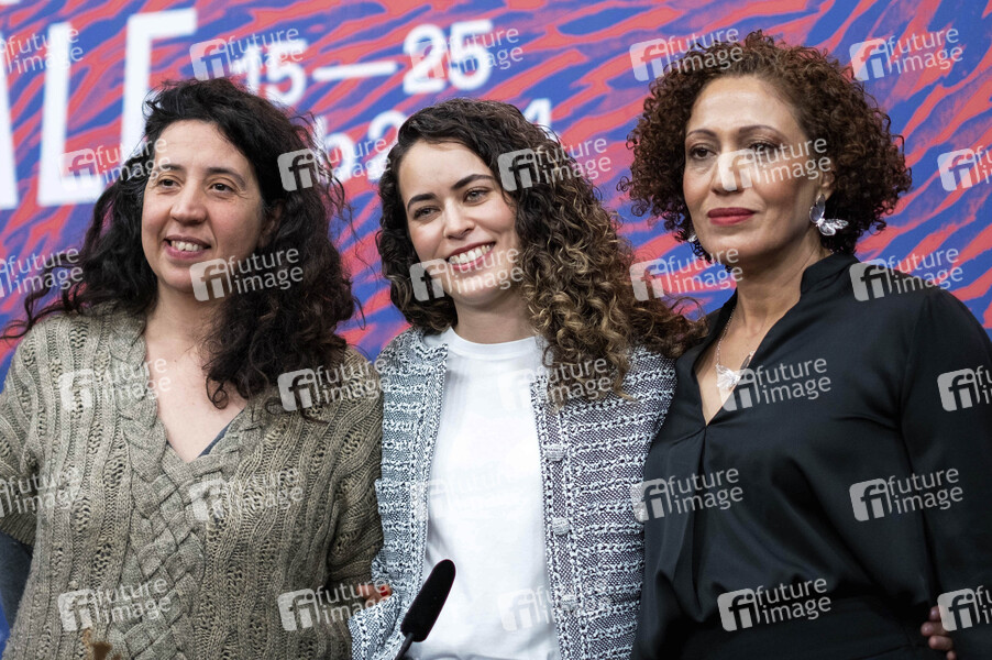 Sarra Ben Hassen, Meryam Joobeur und Salha Nasraoui bei der Pressekonferenz zum Kinofilm 'Mé el Aïn / Who Do I Belong To' auf der Berlinale 2024 / 74. Internationale Filmfestspiele Berlin im Hotel Grand Hyatt. Berlin, 22.02.2024