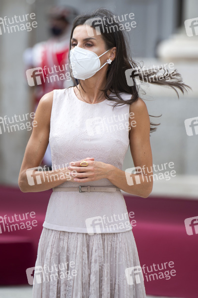 Königin Letizia von Spanien beim Empfang des südkoreanischen Präsidenten mit militärischen Ehren im Palacio Real. Madrid, 15.06.2021