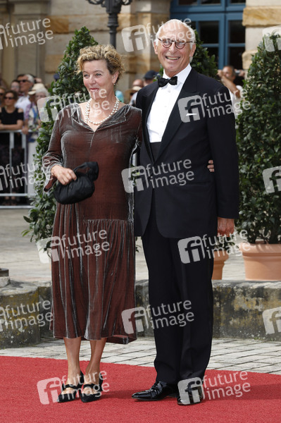 Margarita Broich mit Ehemann Dirk Schmalenbach bei der Eröffnung der 112. Richard-Wagner-Festspiele 2024 mit der Neuinszenierung von 'Tristan und Isolde' im Bayreuther Festspielhaus. Bayreuth, 25.07.2024