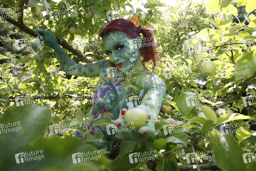 Bodypainting, Erotik, Frau, nackt, draußen, weiblich, Apfel, Apfelbaum, Baum, woman, nude, outdoor, female, erotic, apple, tree