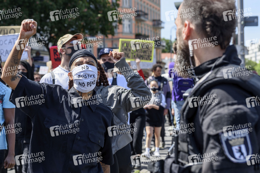 'Black Lives Matter'-Protestdemonstration in Berlin gegen rassistisch motivierte Polizeigewalt nach dem Tod des Afroamerikaners George Floyd in Minneapolis/USA. Zu der Demonstration kamen über 2000 Menschen und liefen vom Mehringdamm bis zum Hermannplatz. Berlin, 31.05.2020
