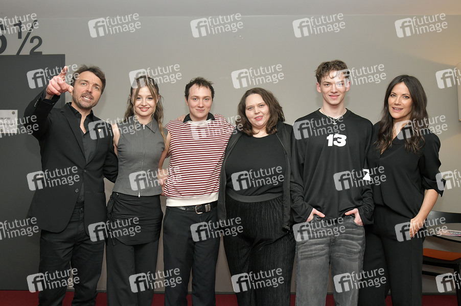 Seumas Sargent, Flora Li Thiemann, Michelangelo Fortuzzi, Frauke Lodders, Lennox Halm und Bettina Zimmermann bei der Premiere des Kinofilms 'Gotteskinder' im Kino filmkunst 66. Berlin, 31.01.2025