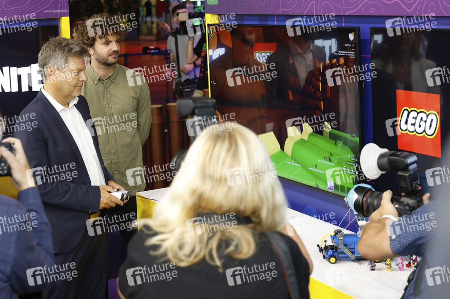 Lego, Spiele-Messe, Gaming, Gaming-Industrie, Spieleindustrie, Spielemesse, Gamingindustrie, Player, Spielesucht, Digitalisierung, Zocken, Daddeln, Games, Game, Spiele, PC-Spiele, Computerspiele, Konsolen, Konsolenspiele, Videospiele, Fair, Event, Gamer, Unterhaltungselektronik, Software, Hardware, europäische Leitmesse für digitale Spielekultur, internationale Gaming-Community, Virtual Reality, Browsergames, Spieletrends, game - Verband der deutschen Games-Branche, Politiker, Bundesminister für Wirtschaft und Klimaschutz, Bündnis 90/Die Grünen, Vizekanzler