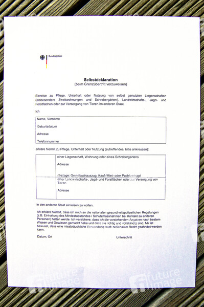 Selbstdeklaration für die Einreise in die Bundesrepublick Deutschland nach Lockerung der Einreise von Österreich in die Bundesrepublick Deutschland