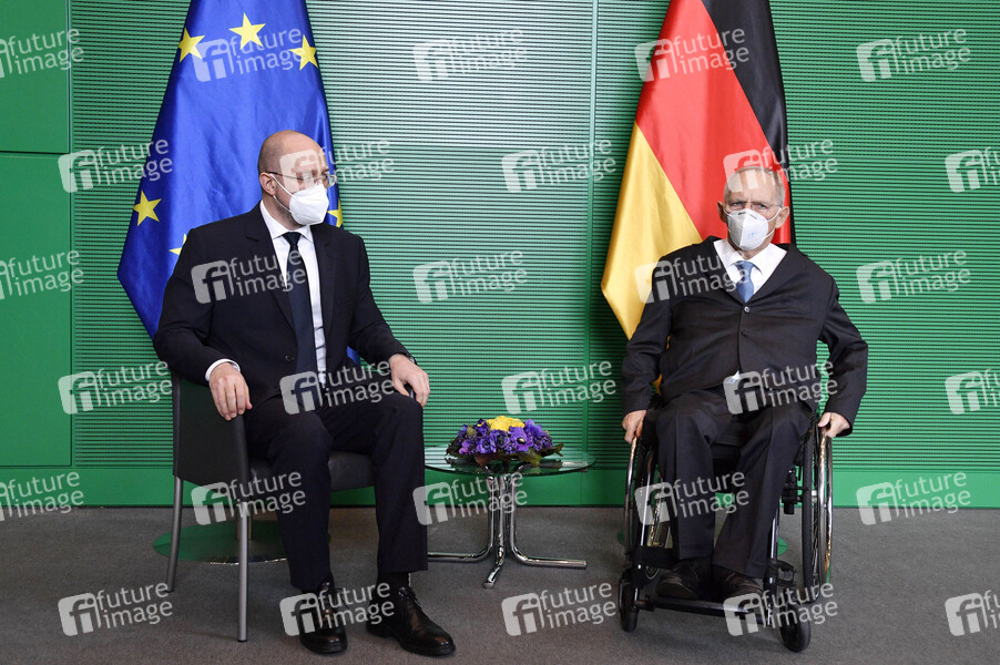 Denys Shmyhal / Denys Schmyhal und Wolfgang Schäuble beim Fototermin anlässlich des Besuchs des ukrainischen Ministerpräsidenten im Reichstagsgebäude. Berlin, 19.03.2021