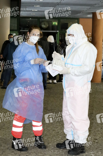 Reger Andrang bei den freiwilligen Corona-Tests für Abschlussklässler des Landkreises Görlitz durch das DRK im Berufsschulzentrum Christoph Lüders. (Symbolbild, Themenbild) Görlitz, 18.01.2021