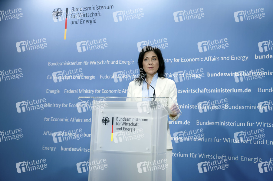 Katherina Reiche beim Pressestatement zu Kabinettsthemen im Bundesministerium für Wirtschaft und Energie. Berlin, 06.08.2025