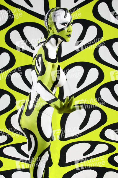 Bodypainting, Stoffdesign Anna Efverlund, Erotik, Frau, nackt, drinnen, weiblich, Muster, Chamäleon, erotic, woman, nude, indoor, female, chameleon