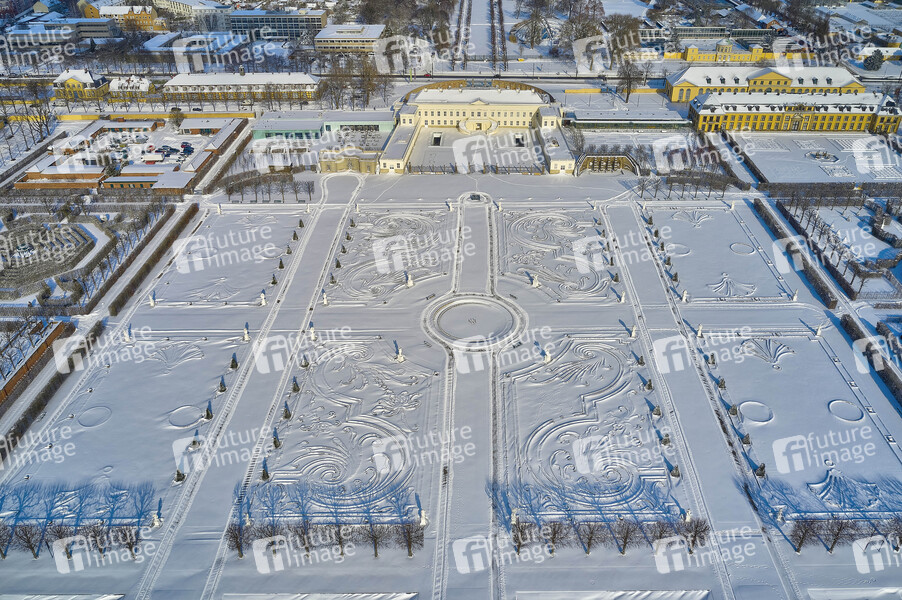 Luftaufnahme, Großer Garten, Barockgarten, Sehenswürdighkeit, Sightseeing, Tourismus, Veranstaltungsort, Berggarten, Winter, Schnee