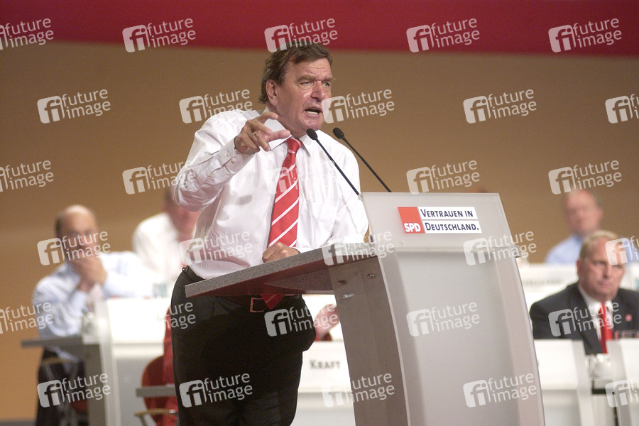 Gerhard Schröder beim Außerordentlichen Parteitag der SPD anlässlich der Bundestagswahl 2005 im Estrel Convention Center. Berlin, 31.08.2005