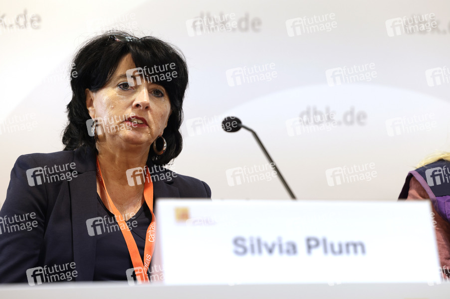 Silvia Plum beim Pressegespräch zum Thema 'Ein Jahr nach der Flut: Kirchliche Aufbauhilfe, Notfallseelsorge und der Einsatz für die Menschen' im Rahmen der Vollversammlung der Deutschen Bischofskonferenz im Dompfarrzentrum. Fuöda, 27.09.2022