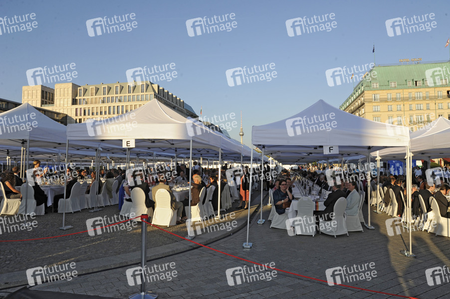'Tafel der Demokratie' am Brandenburger Tor, Berlin. 1500 Bürgerinnen und Bürger werden über Medienpartnerschaften mit den Regionalzeitungen zur eingeladen. Die Auswahl der Gäste erfolgt durch Losentscheid.