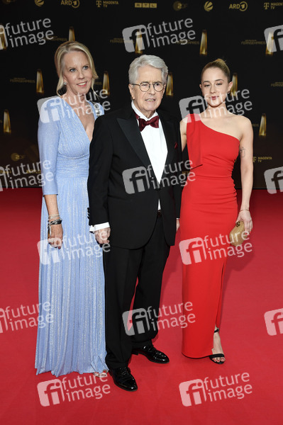 Frank Elstner mit Ehefrau Britta Gessler und Tochter Enya Elstner bei der Verleihung des Deutschen Fernsehpreises 2025 in den MMC Studios. Köln, 10.09.2025