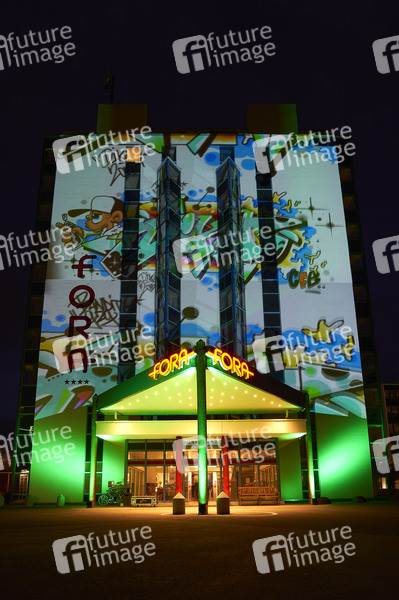 '3 Tage, 3 Wochen, 3 Künstler - Wir leuchten, um gesehen zu werden' - Graffiti-Kunst von Make Your Mark am Fora Hotel. Gemeinsam mit dem Unternehmen allstars event GmbH, die Aktionen wie 'Hannover leuchtet' und 'Night of Light' umsetzten, wurde dieses Projekt initiiert, um auf drei wichtige Branchen aufmerksam zu machen, die besonders unter den Corona-Maßnahmen leiden, die Hotelbranche, die Veranstaltungsbranche, sowie Kunst und Kultur. (Bildfreigabe des Fora Hotels, der allstars event GmbH und des Künstlers Make your Mark liegt vor) Hannover, 22.02.2021