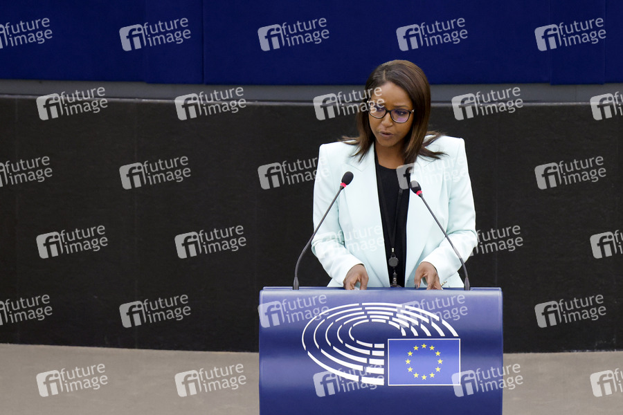 Monica Semedo im Plenarsaal des Europäischen Parlaments. Straßburg, 07.03.2022