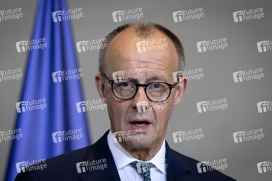 Friedrich Merz beim Empfang des Premierministers von Estland mit militärischen Ehren zu einem gemeinsamen Gespräch mit anschließendem Pressestatement im Bundeskanzleramt. Berlin, 27.11.2025