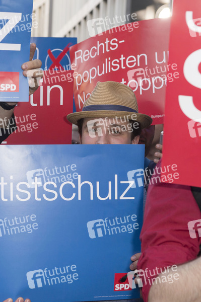 Martin Schulz Unterstützer vor der Telekom Hauptstadtrepräsentanz, in der die TV-Talksendung 'Wie geht´s, Europa?' mit Maybrit Illner und Mitri Sirin stattfindet. Berlin, 22.05.2014