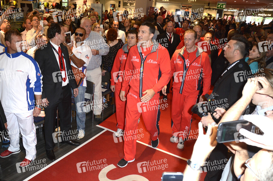 Wladimir Klitschko beim Einwiegen anlässlich des WM-Boxkampfs Wladimir Klitschko vs Alex Leapai in den Karstadt Arkaden vom Rhein-Ruhr Zentrum. Mülheim an der Ruhr, 25.04.2014