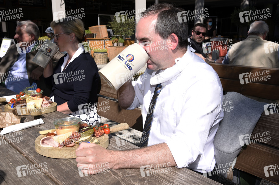 Hubert Aiwanger im Biergarten Paulaner am Nockherberg nach Corona-Maßnahmen-Lockerungen. München, 18.05.2020