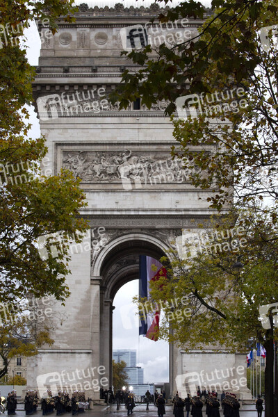 cérémonies du 101ème anniversaire de l’Armistice de 1918, Arc de Triomphe, Politik, Euroapolitik, Weltpolitik, Zeremonie, Feierlichkeiten, Feierlichkeit, Staatengemeinschaft, Internationale Organisationen, Verbündete, Militär, Soldaten