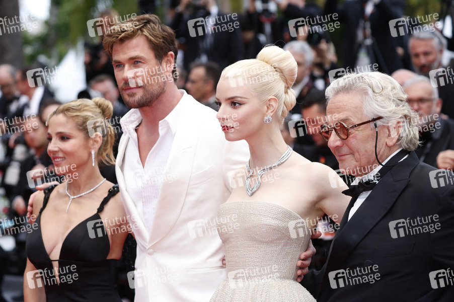 Elsa Pataky, Chris Hemsworth, Anya Taylor-Joy und George Miller bei der Premiere des Kinofilms 'Furiosa: A Mad Max Saga' auf dem Festival de Cannes 2024 / 77. Internationale Filmfestspiele von Cannes im Palais des Festivals. Cannes, 15.05.2024