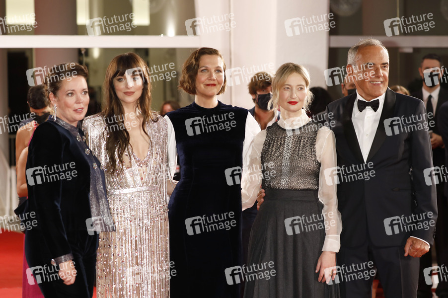 Olivia Colman, Dakota Johnson, Maggie Gyllenhaal, Alba Rohrwacher und Alberto Barbera bei der Premiere des Kinofilms 'The Lost Daughter' auf der Biennale di Venezia 2021 / 78. Internationale Filmfestspiele von Venedig im Palazzo del Cinema. Venedig, 03.09.2021
