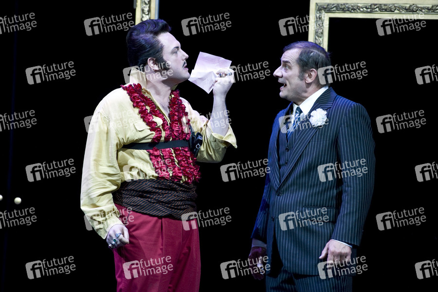 Jakob Schneider und Joachim Nimtz bei der Fotoprobe 'Floh im Ohr' im Berliner Ensemble. Berlin, 16.05.2013